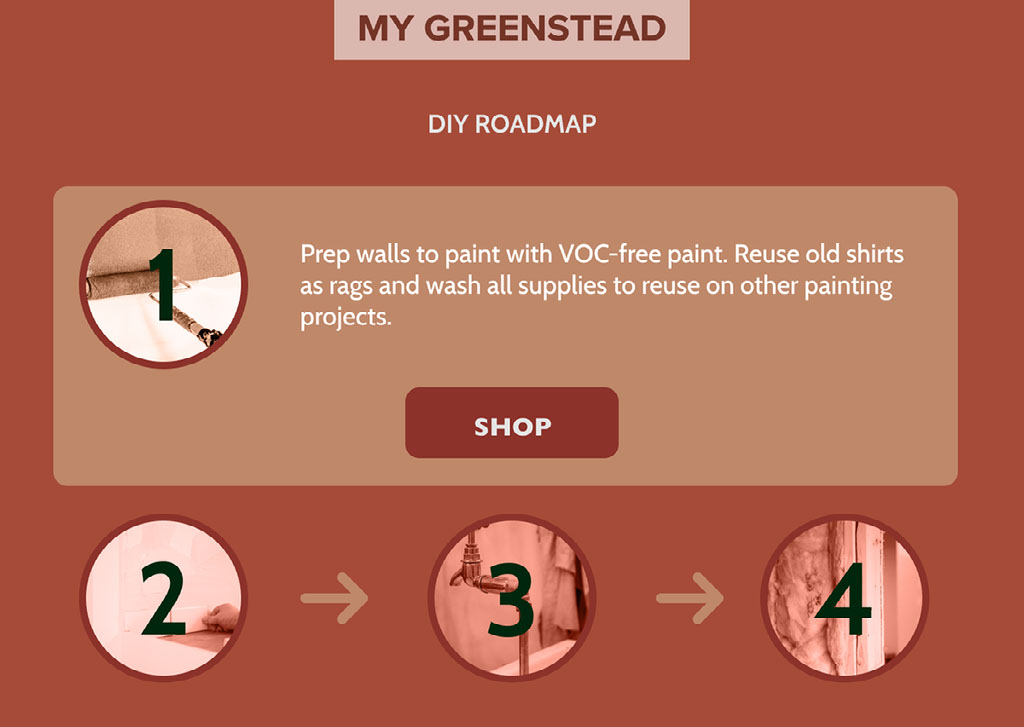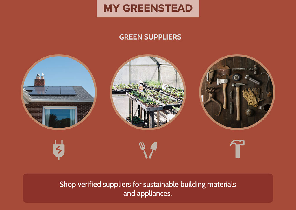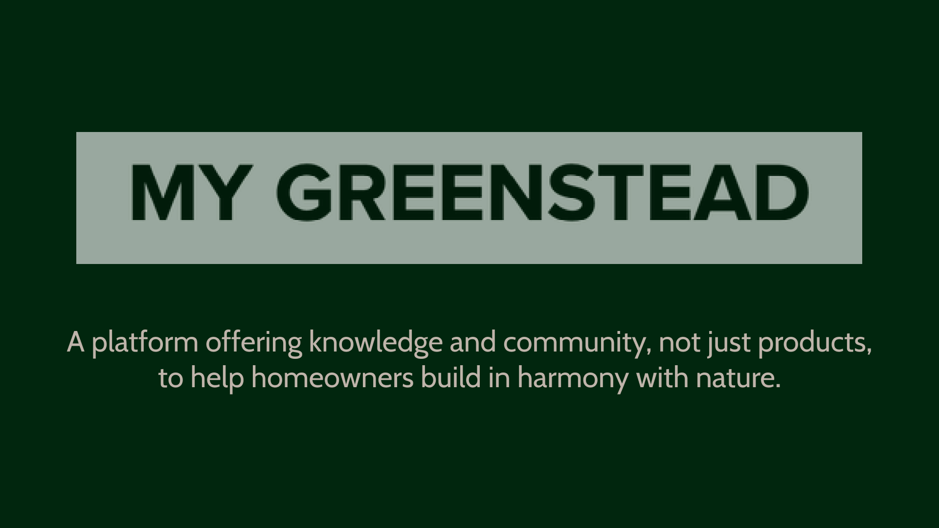 This website addresses the missing gap for homeowners (or renters) to learn and execute sustainable building practices (retrofit a home to reduce its carbon impact). The resulting website pitches a digital platform, "My Greenstead," to educate homeowners about greenifying their homestead, to remove cost and time barriers to sustainable home improvement.